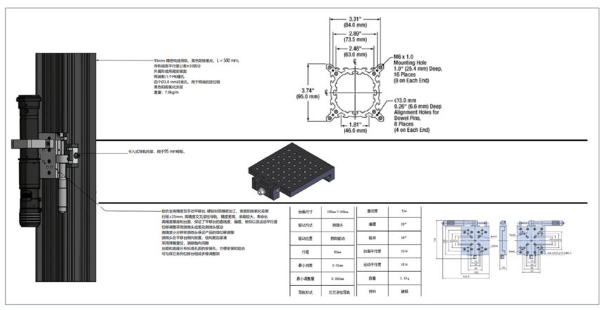 光学支架是一套显微成像系统中必不可少的一个部分。埃微泰可以根据您客户的具体拍摄场景、精度要求,量身定制经济、灵活、且精度合乎目标的光学支架模块,搭配各类镜头系统,协助用户实现精细操作和聚焦。 作用: ▶ 从各个角度安装镜头,从各个轴向操纵镜头的作用。 ▶ 合适的光学支架能够帮助用户获得理想的拍摄角度,实现灵活且精准的聚焦,从而捕获到需要的微观细节。 ▶ 能够用于支撑和优化光学器件,便于开展光学检验和验证。 具体搭配案例和说明: 一体式精密聚焦支架 以下是我们一款标准型 Z轴聚焦支架的图示说明。该支架主体为一体构造精密导轨,带动镜头实现高度粗调,精细聚焦部分采用了高精度手动调整机构,最高可实现2μm的调整量。可根据用户需要配置各类安装卡具、以及不同防震等级的光学底板。