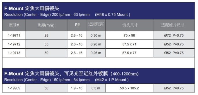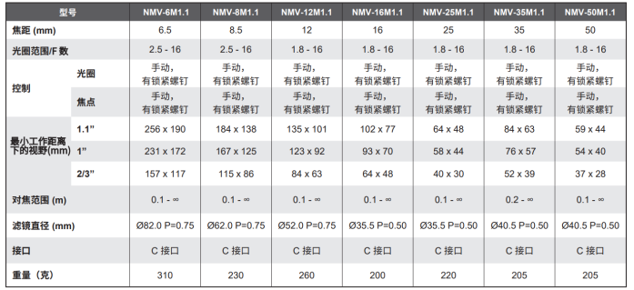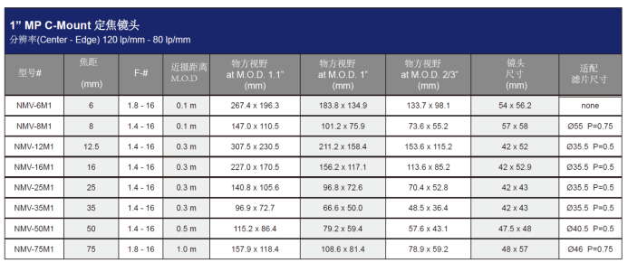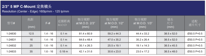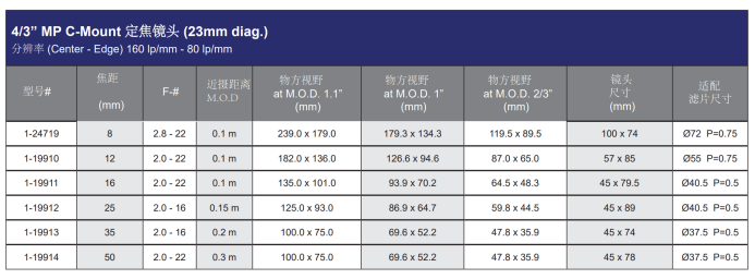 4/3” 8MP C接口镜头:
